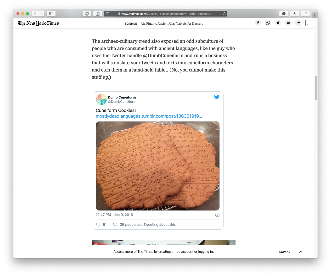| New York Times | 11/14/2016 | Ah, Finally, Ancient Clay Tablets for Dessert | archived |