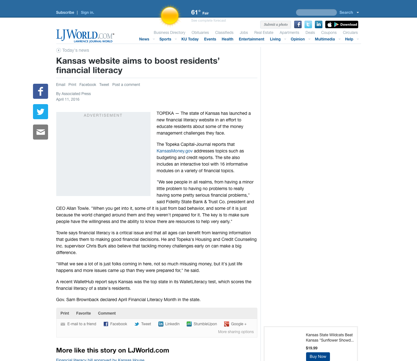 I designed a financial literacy portal for the state of Kansas.