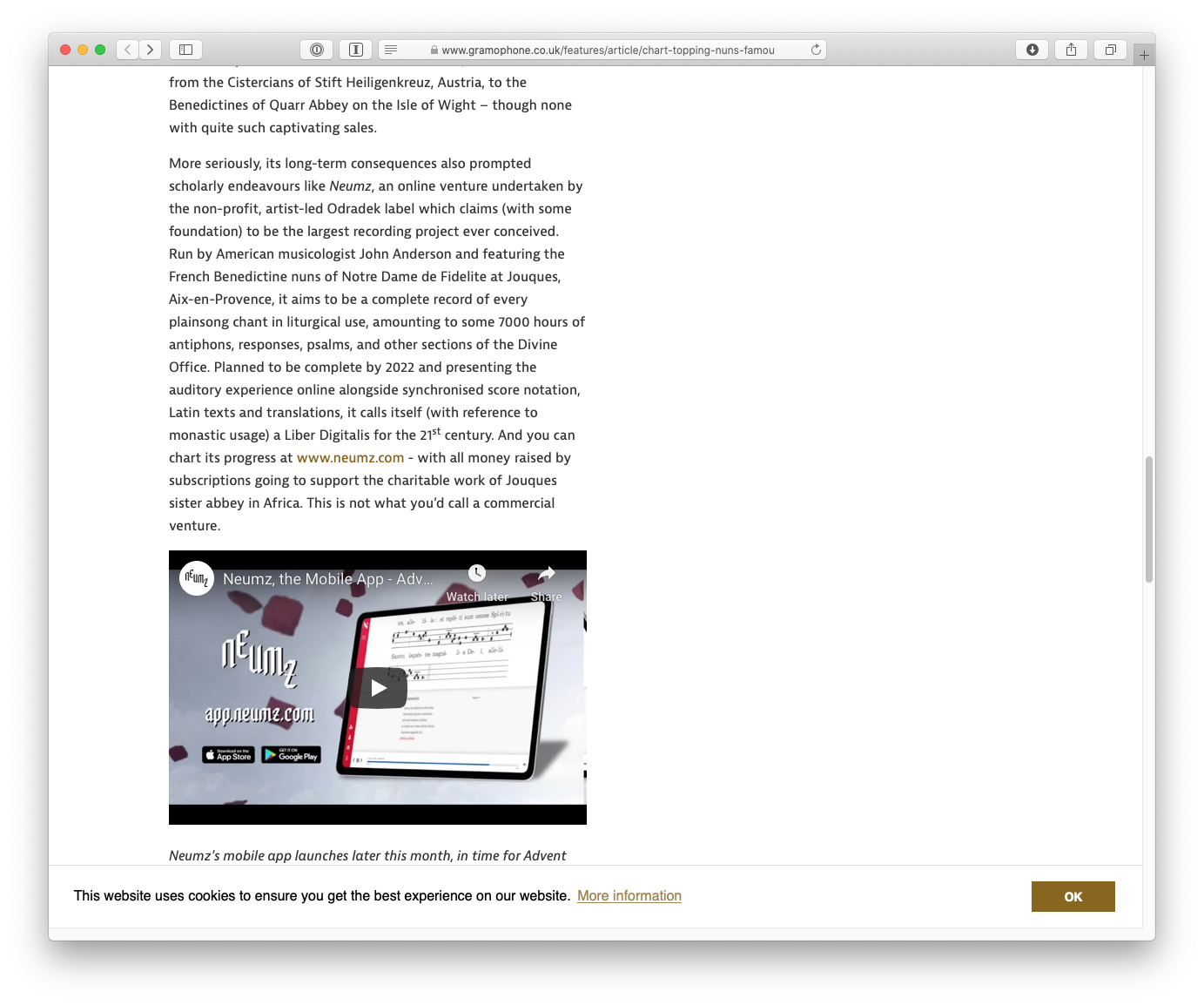Neumz is a giant Gregorian Chant project, with an actual marketing budget. It's gotten a lot of press!