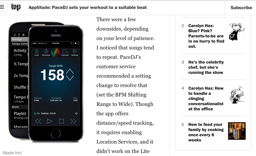 A web and mobile app for a client: PaceDJ lets you build exercise playlists that match a target BPM. It'll even subtly shift the speed of your music to fit your desired pace.