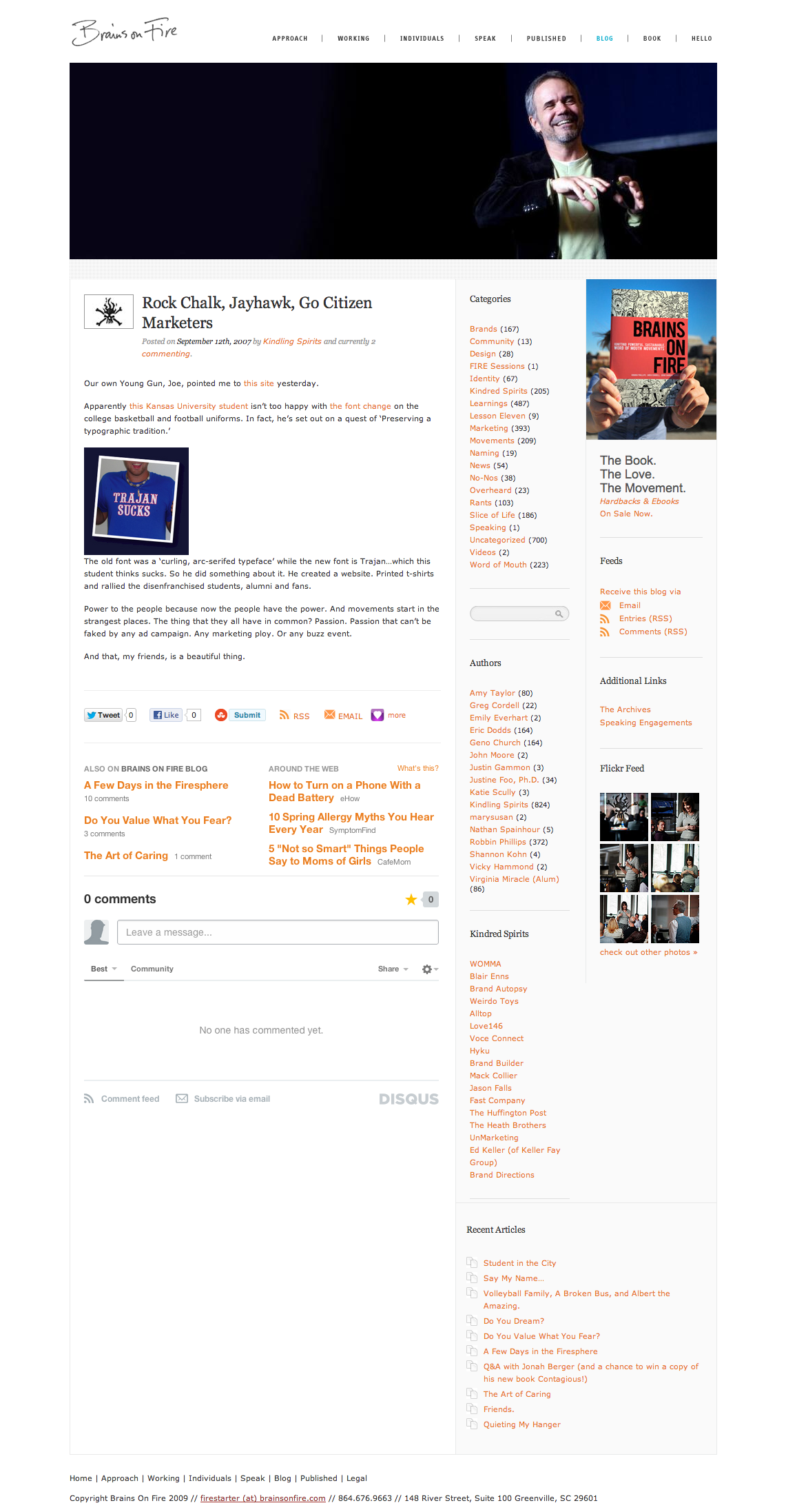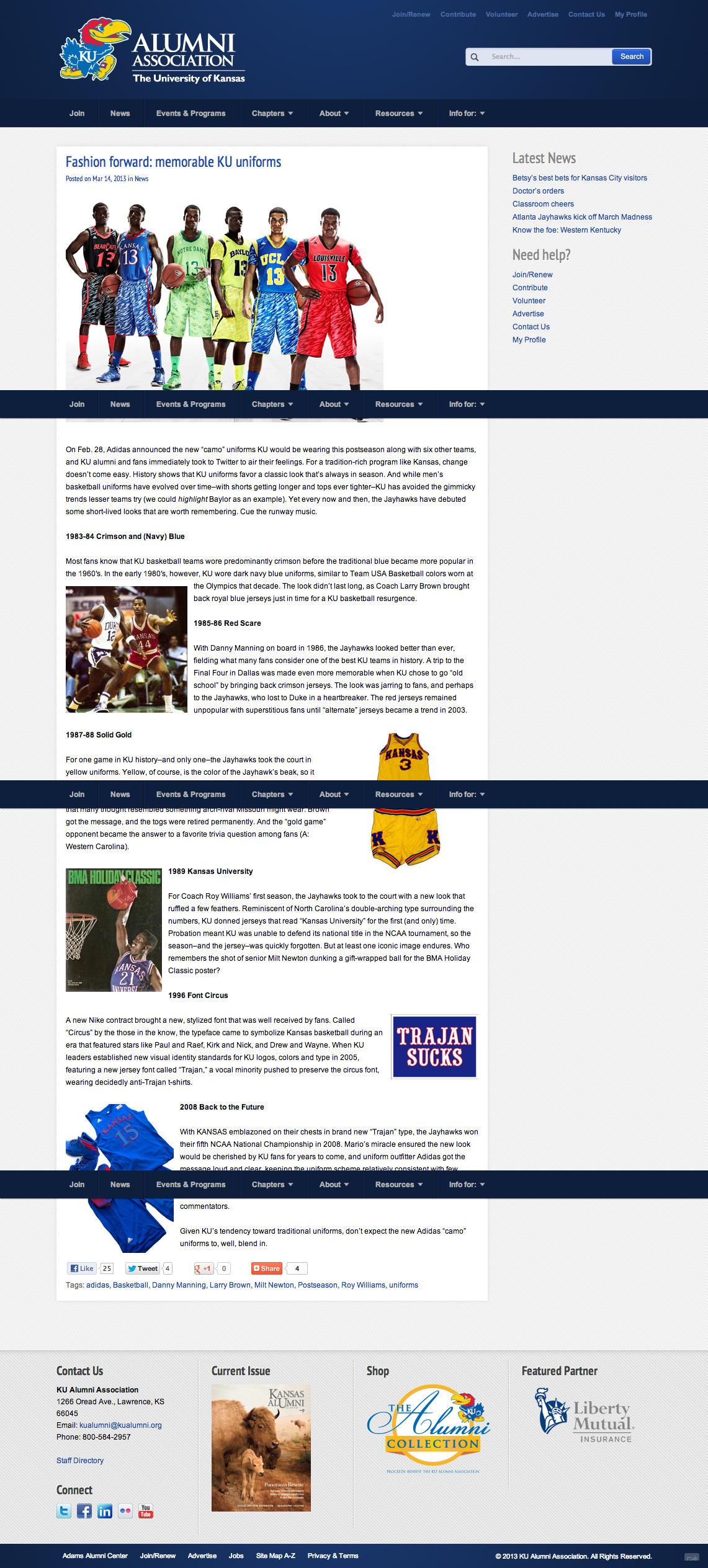 A small site and tshirt project protesting a font change on the University of Kansas basketball uniforms. The money quote came from the Athletics Director: when asked about it by a sports journalist, he said: "I have real problems."